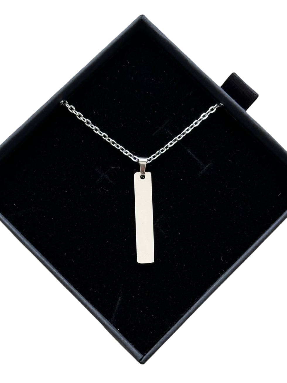 Le collier Vertical séduit par sa ligne épurée et contemporaine. Son pendentif allongé accueille une gravure personnalisée, pensée comme une signature discrète et élégante.